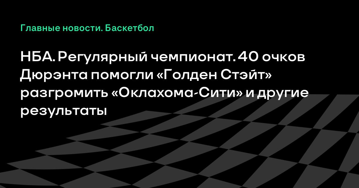 НБА. Регулярный чемпионат. 40 очков Дюрэнта помогли «Голден Стэйт» разгромить «Оклахома-Сити» и другие результаты