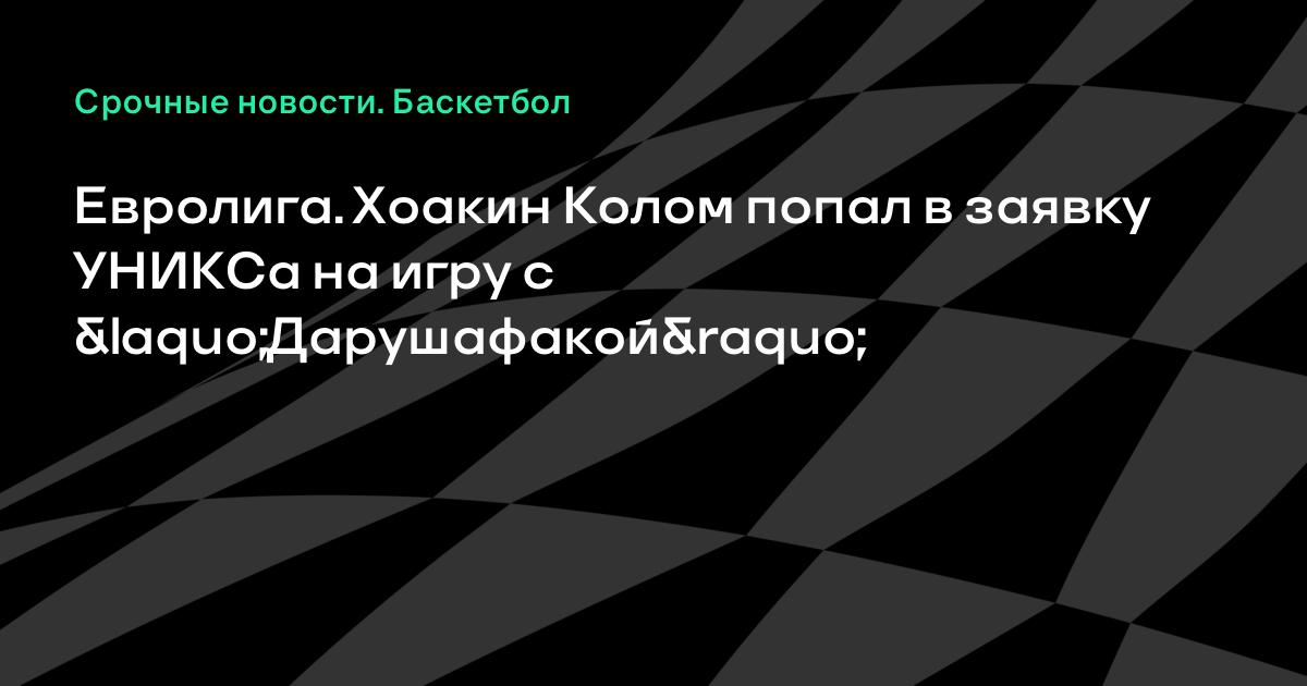 Защитник УНИКСа Хоакин Колом попал в заявку казанской команды на матч Евролиги с турецкой «Дарушафакой», информирует «Р-Спорт».