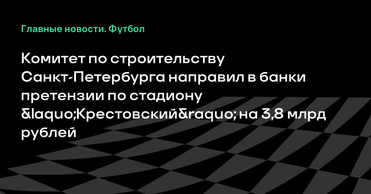Комитет по строительству Санкт-Петербурга направил претензии в банки по вопросам, касающимся строительства стадиона «Крестовский» на общую сумму около 3,84 млрд рублей, сообщил представитель комитета по строительству.