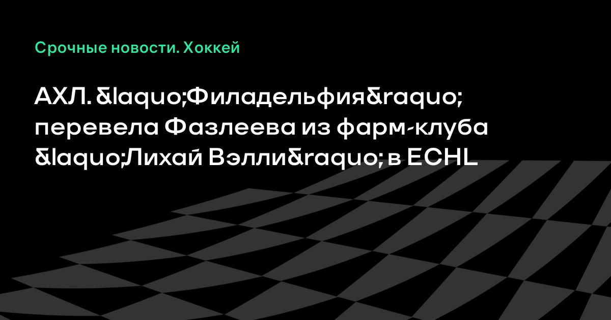 АХЛ. «Филадельфия» перевела Фазлеева из фарм-клуба «Лихай Вэлли» в ECHL