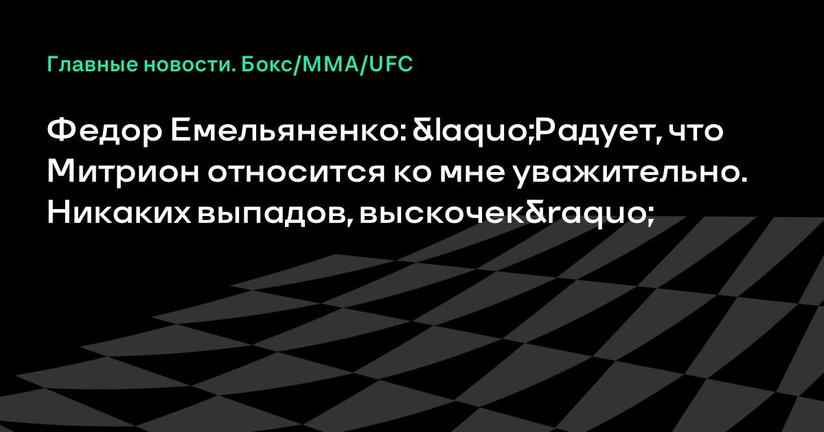 Федор Емельяненко: «Радует, что Митрион относится ко мне уважительно. Никаких выпадов, выскочек»