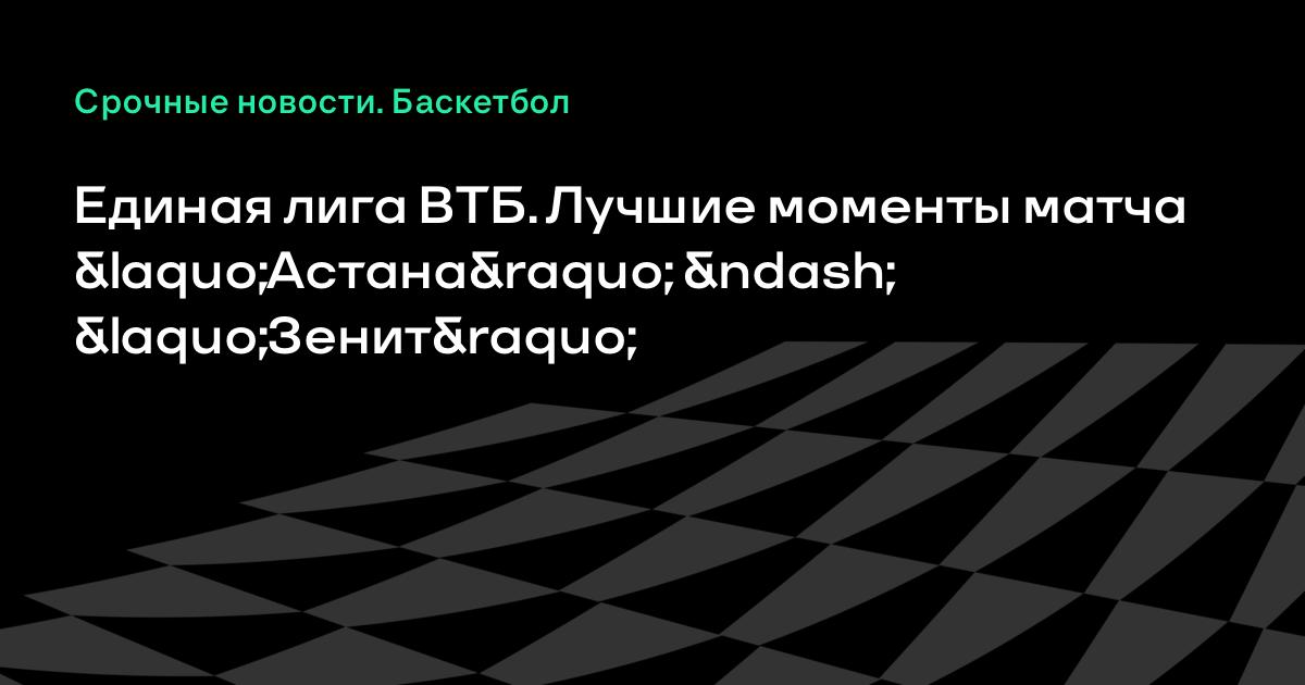 21 января 2017, 19:29 Единая лига ВТБ. Лучшие моменты матча «Астана» – «Зенит» Лучшие моменты матча Единой лиги ВТБ «Астана» – «Зенит». Источник: Официальный сайт Единой лиги ВТБ Баскетбол Зенит Баскетбол - видео Единая лига ВТБ Астана