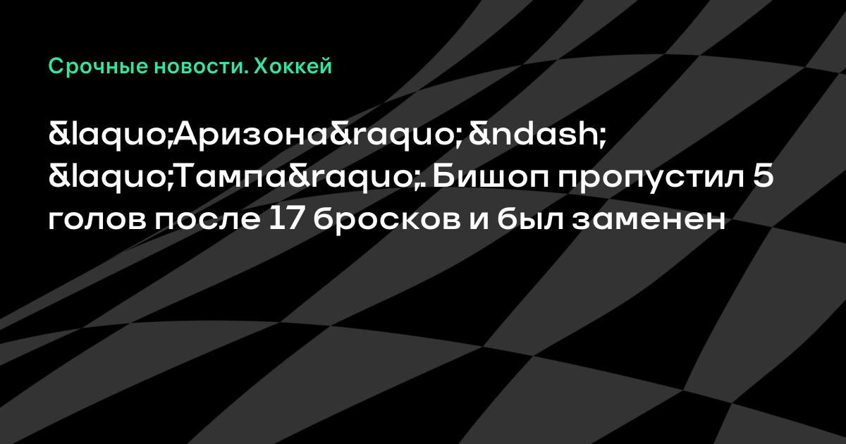 «Аризона» – «Тампа». Бишоп пропустил 5 голов после 17 бросков и был заменен