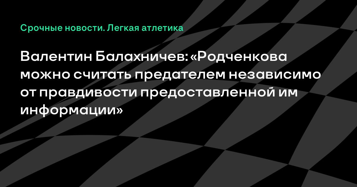 Бывший президент Всероссийской федерации легкой атлетики (ВФЛА) Валентин Балахничев заявил, что экс-глава Московской антидопинговой лаборатории Григорий Родченков является предателем.