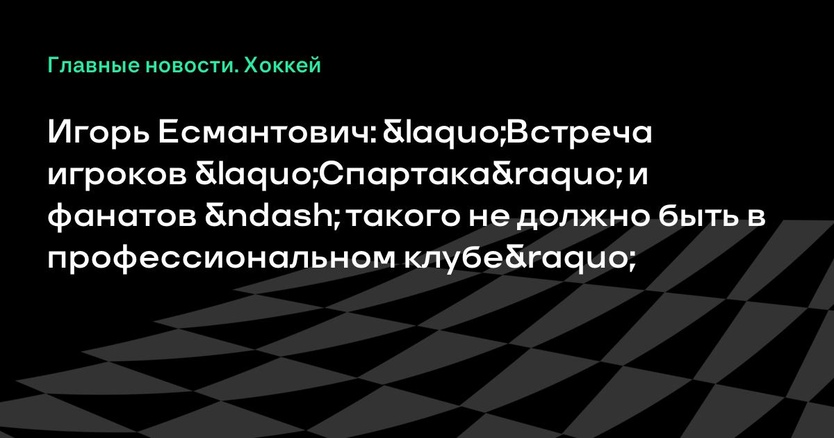 Исполняющий обязанности президента ЦСКА Игорь Есмантович прокомментировал встречу хоккеистов «Спартака» с болельщиками, которая прошла в раздевалке команды.