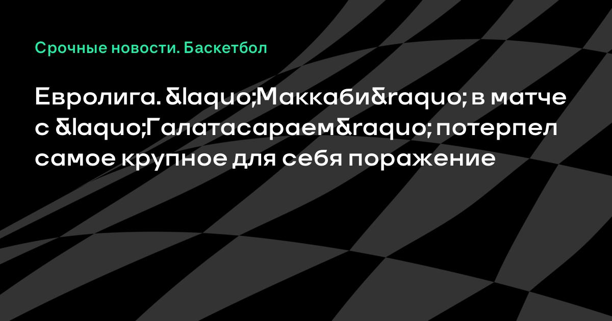 Евролига. «Маккаби» в матче с «Галатасараем» потерпел самое крупное для себя поражение