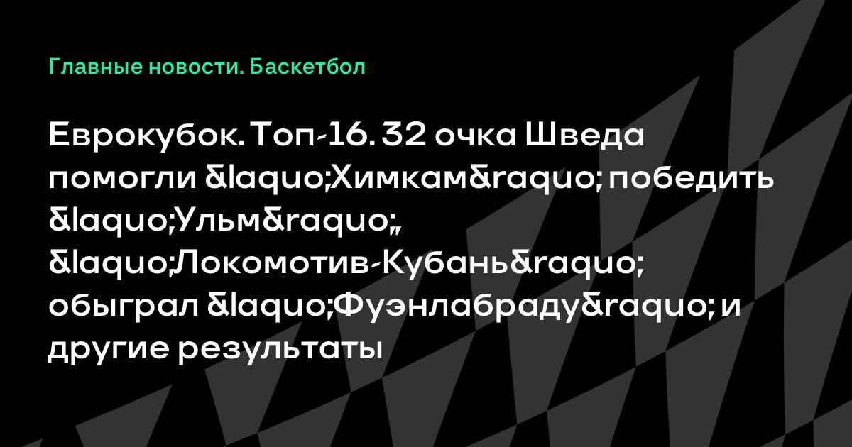 Еврокубок. Топ-16. 32 очка Шведа помогли «Химкам» победить «Ульм», «Локомотив-Кубань» обыграл «Фуэнлабраду» и другие результаты