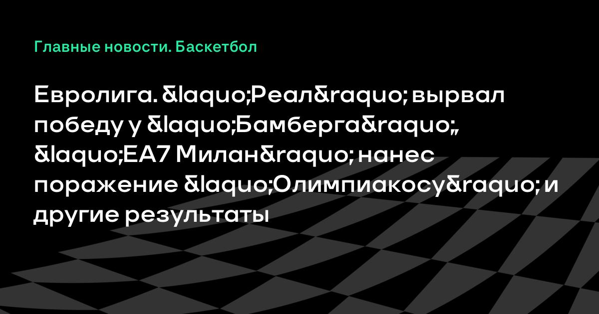 Евролига. «Реал» вырвал победу у «Бамберга», «ЕА7 Милан» нанес поражение «Олимпиакосу» и другие результаты