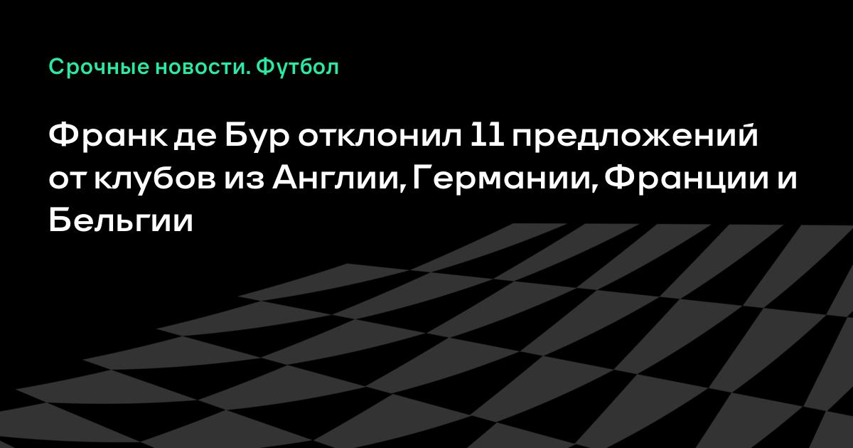 Агент бывшего тренера «Интера» Франка де Бура Гидо Альберс сообщил, что голландец отклонил несколько предложений от 11 различных клубов.