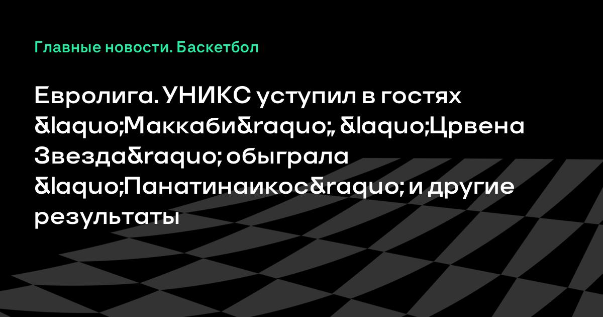 Евролига. УНИКС уступил в гостях «Маккаби», «Црвена Звезда» обыграла «Панатинаикос» и другие результаты