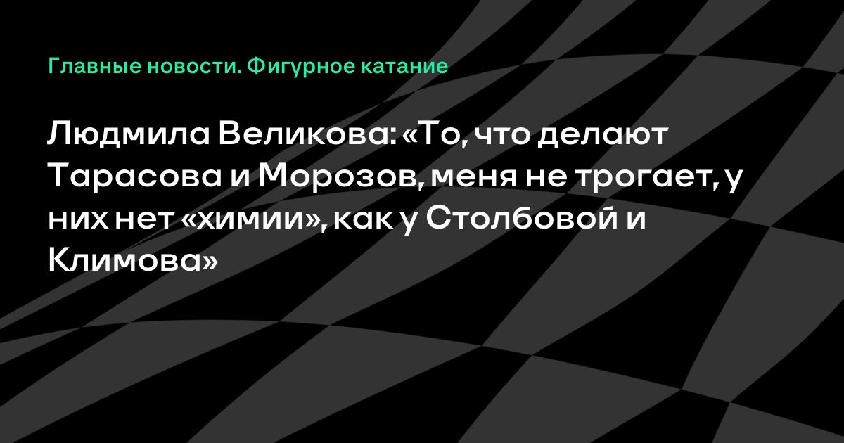 Людмила Великова: «То, что делают Тарасова и Морозов, меня не трогает, у них нет «химии», как у Столбовой и Климова»