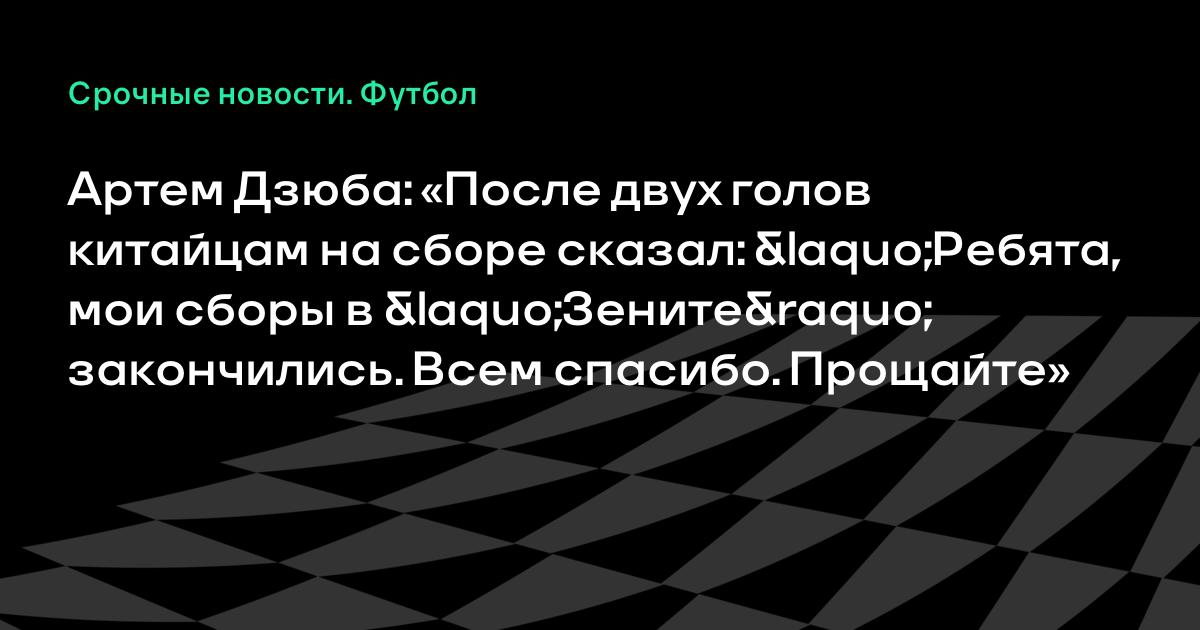 Артем Дзюба: «После двух голов китайцам на сборе сказал: «Ребята, мои сборы в «Зените» закончились. Всем спасибо. Прощайте»