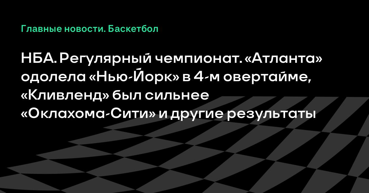 НБА. Регулярный чемпионат. «Атланта» одолела «Нью-Йорк» в 4-м овертайме, «Кливленд» был сильнее «Оклахома-Сити» и другие результаты