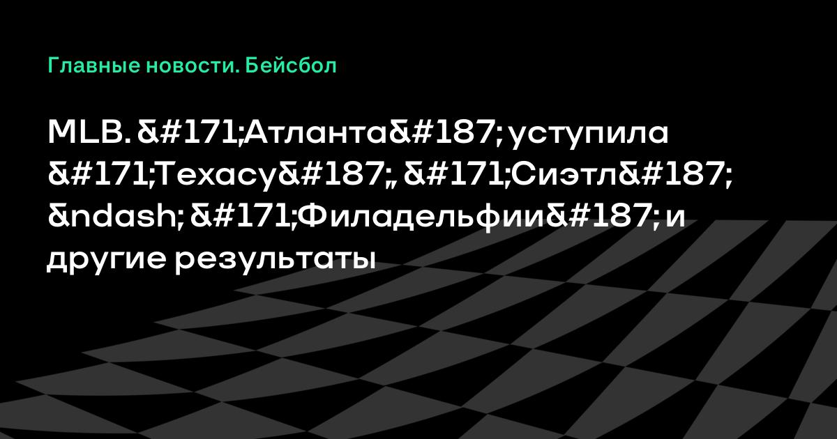 MLB. «Атланта» уступила «Техасу», «Сиэтл» – «Филадельфии» и другие результаты