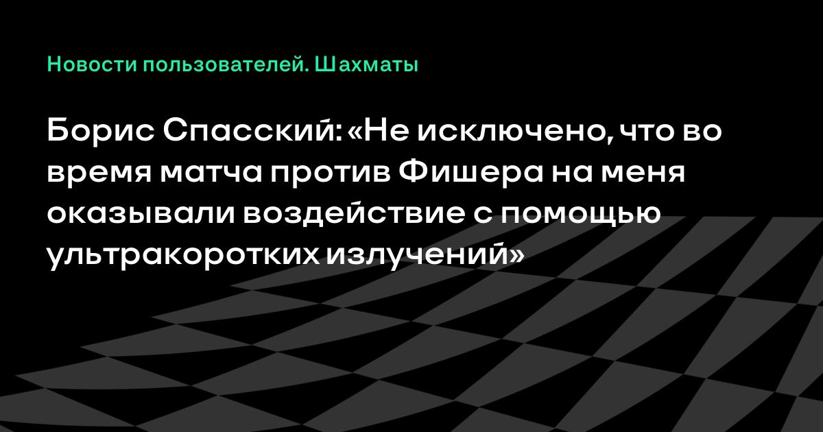 Борис Спасский: «Не исключено, что во время матча против Фишера на меня оказывали воздействие с помощью ультракоротких излучений»