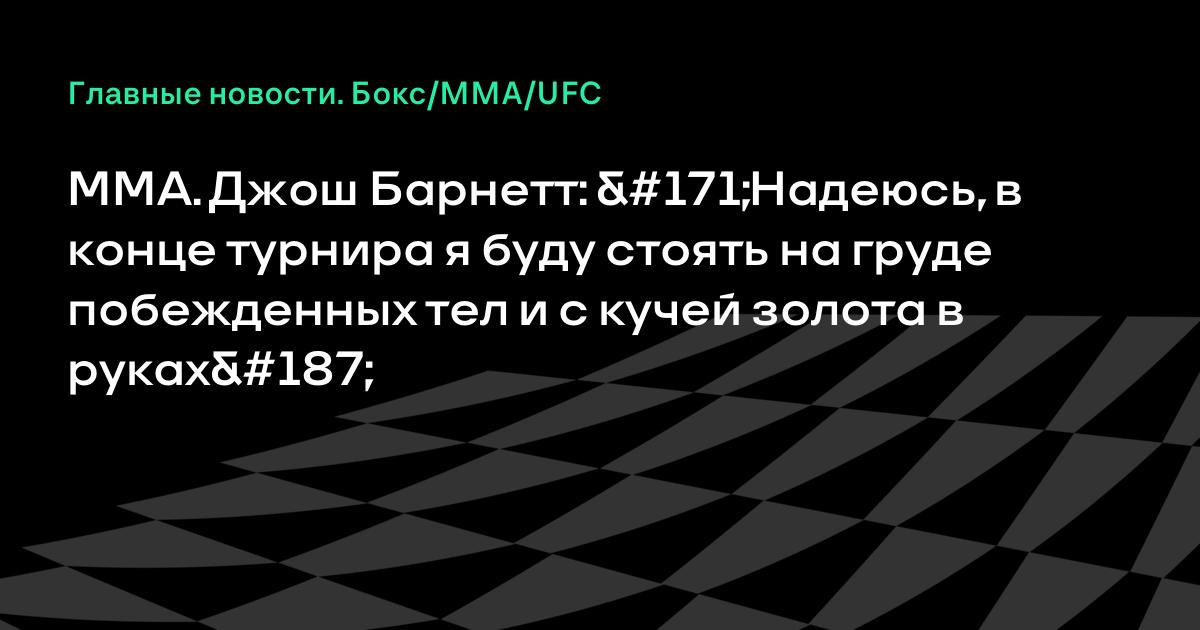 MMA. Джош Барнетт: «Надеюсь, в конце турнира я буду стоять на груде побежденных тел и с кучей золота в руках»