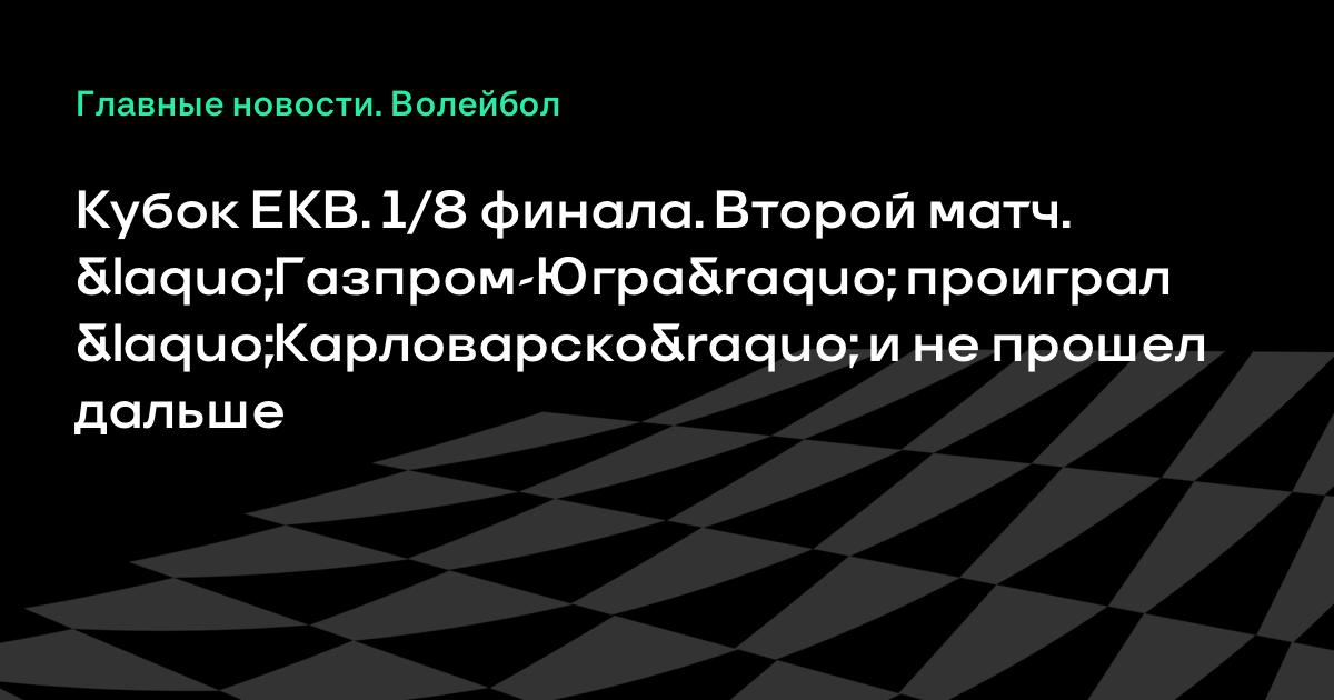 Сегодня состоялись вторые матчи 1/8 мужского Кубка ЕКВ. «Газпром-Югра» вновь проиграл чешскому «Карловарско» и не прошел в 1/4 финала.