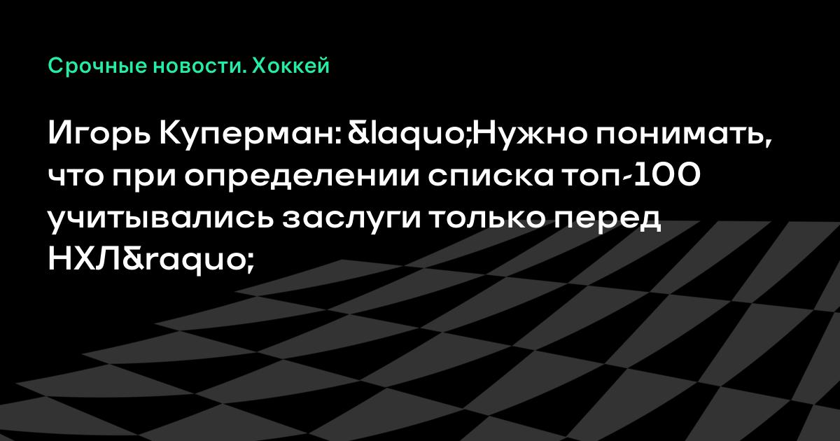Игорь Куперман: «Нужно понимать, что при определении списка топ-100 учитывались заслуги только перед НХЛ»
