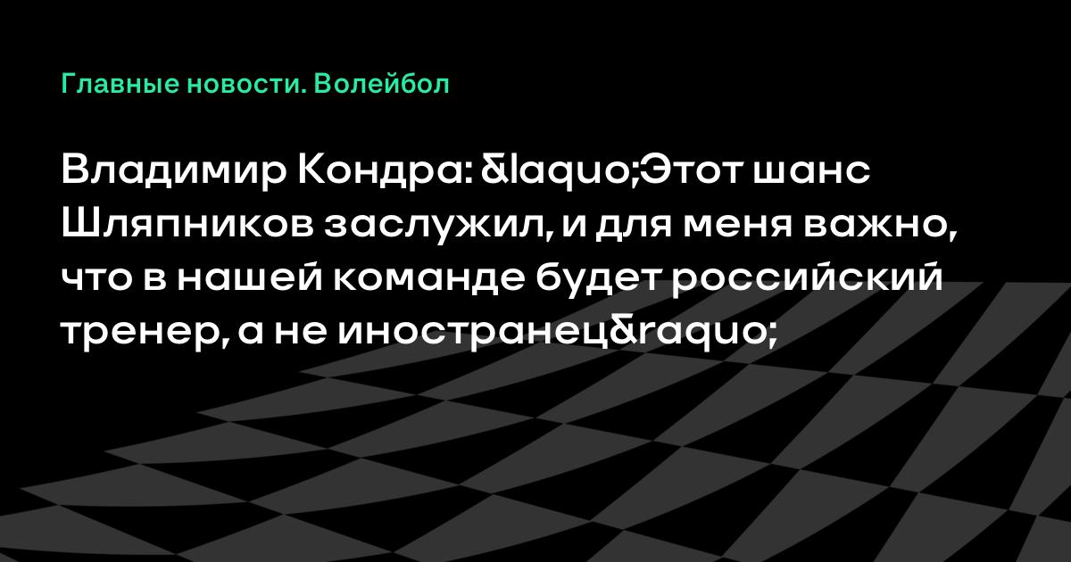 Но этот шанс Шляпников заслужил, и для меня важно, что в нашей команде будет российский тренер, а не иностранец. Наш волейбол всегда был в числе ведущих в мире, мы – не африканская или азиатская страна, которая делает первые шаги и нуждается в иностранце, который бы ее учил.