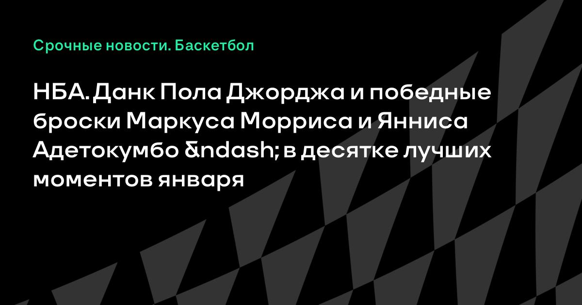 4 февраля 2017, 17:59 НБА. Данк Пола Джорджа и победные броски Маркуса Морриса и Янниса Адетокумбо – в десятке лучших моментов января Данк Пола Джорджа и победные броски Маркуса Морриса и Янниса Адетокумбо – в десятке лучших моментов января. ВИДЕО Источник: YouTube Баскетбол НБА Баскетбол - видео