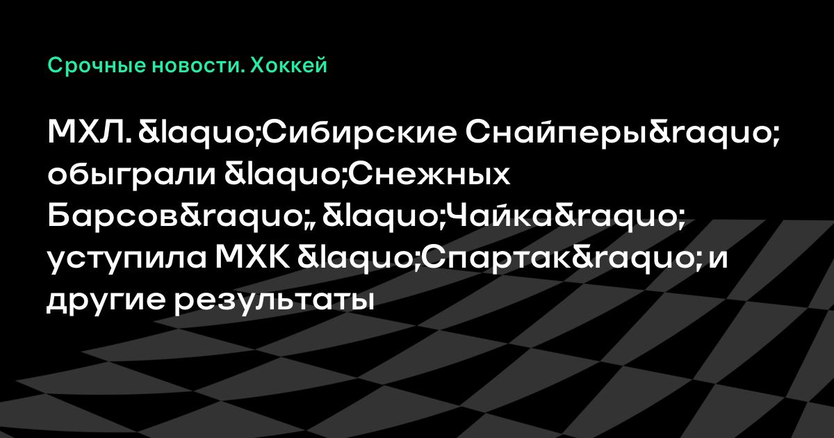 МХЛ. «Сибирские Снайперы» обыграли «Снежных Барсов», «Чайка» уступила МХК «Спартак» и другие результаты