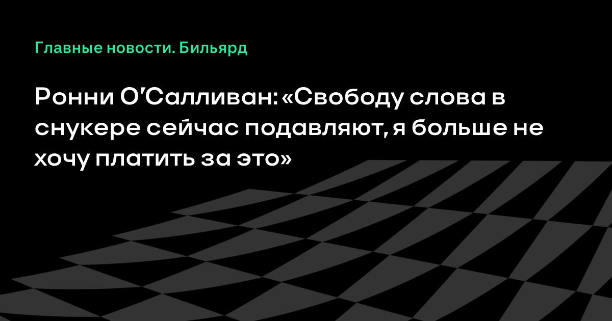 Ронни О’Салливан: «Свободу слова в снукере сейчас подавляют, я больше не хочу платить за это»