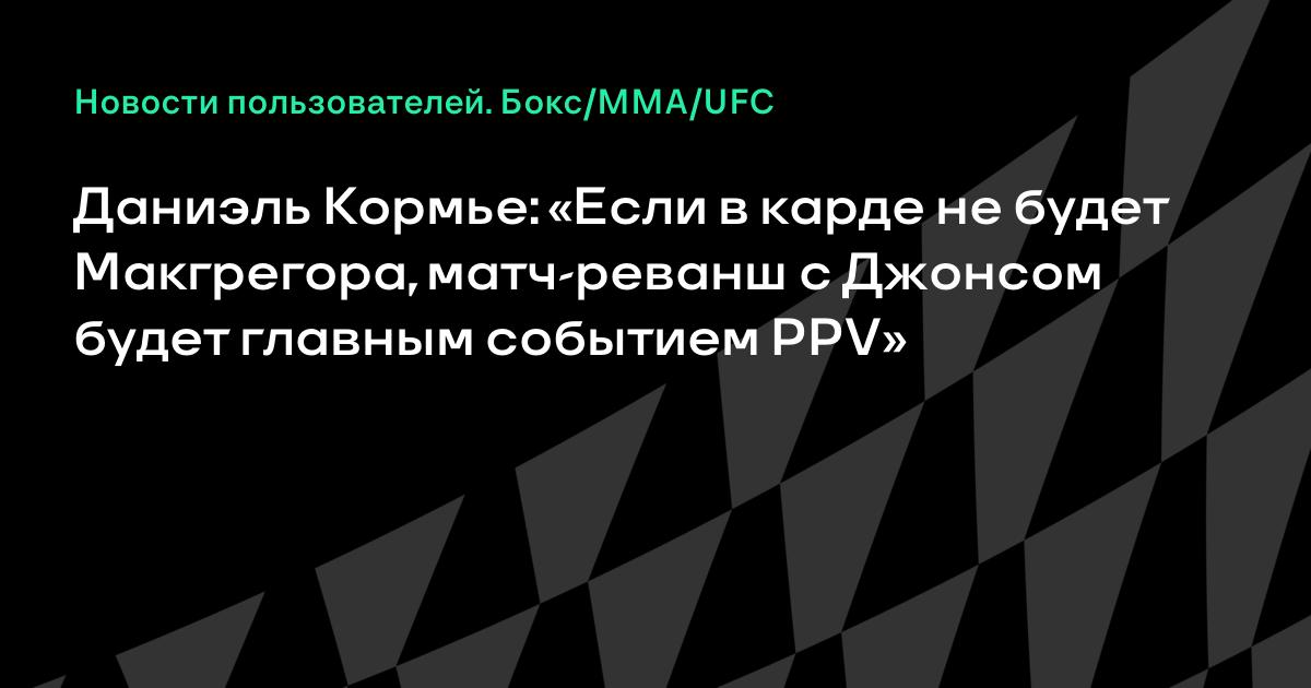 Несмотря на эти слова Даны Уайта, в понедельник в эфире «Часа ММА» Даниэль Кормье поднял интересный вопрос. Он заявил, что если, или лучше сказать, когда состоится их реванш с Джонсом, это будет такое грандиозное событие, что трудно себе представить, что такой поединок не станет хэдлайнером события с трансляцией PPV. На самом деле, Кормье действительно не может представить себе его потенциальный матч-реванш с Джонсом, который значился бы в карде в качестве ко-мейн ивента. Этот сценарий мог бы произойти только в одном случае — если бы хедлайнером события выступал чемпион UFC в легком весе суперзвезда ММА Конор Макгрегор.