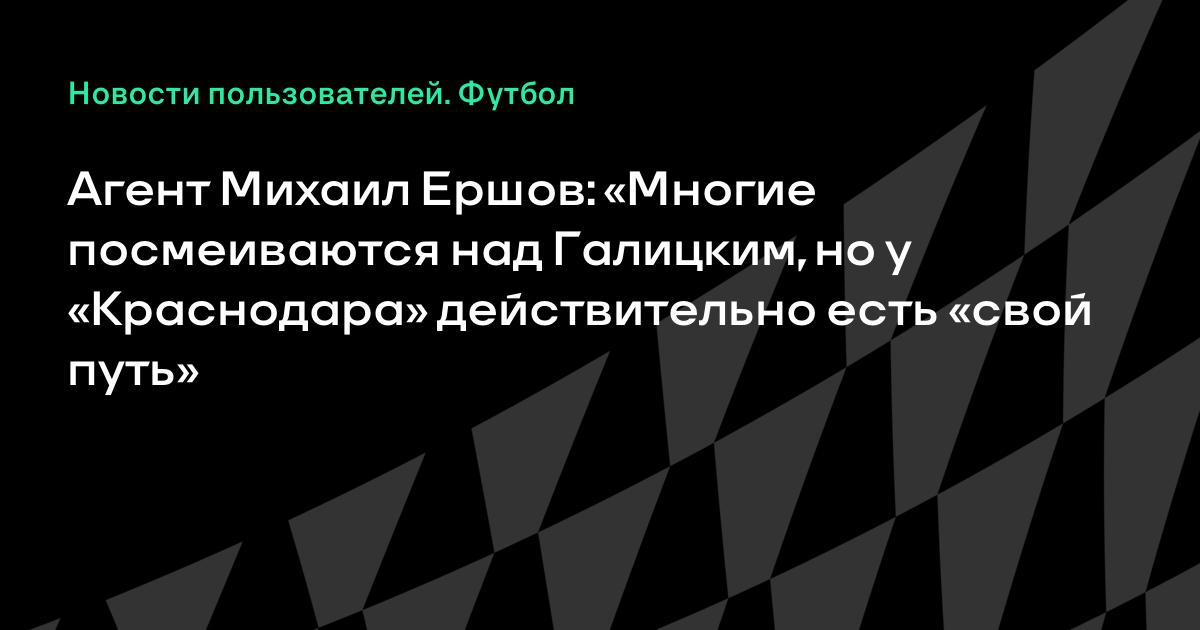 Агент Михаил Ершов: «Многие посмеиваются над Галицким, но у «Краснодара» действительно есть «свой путь»