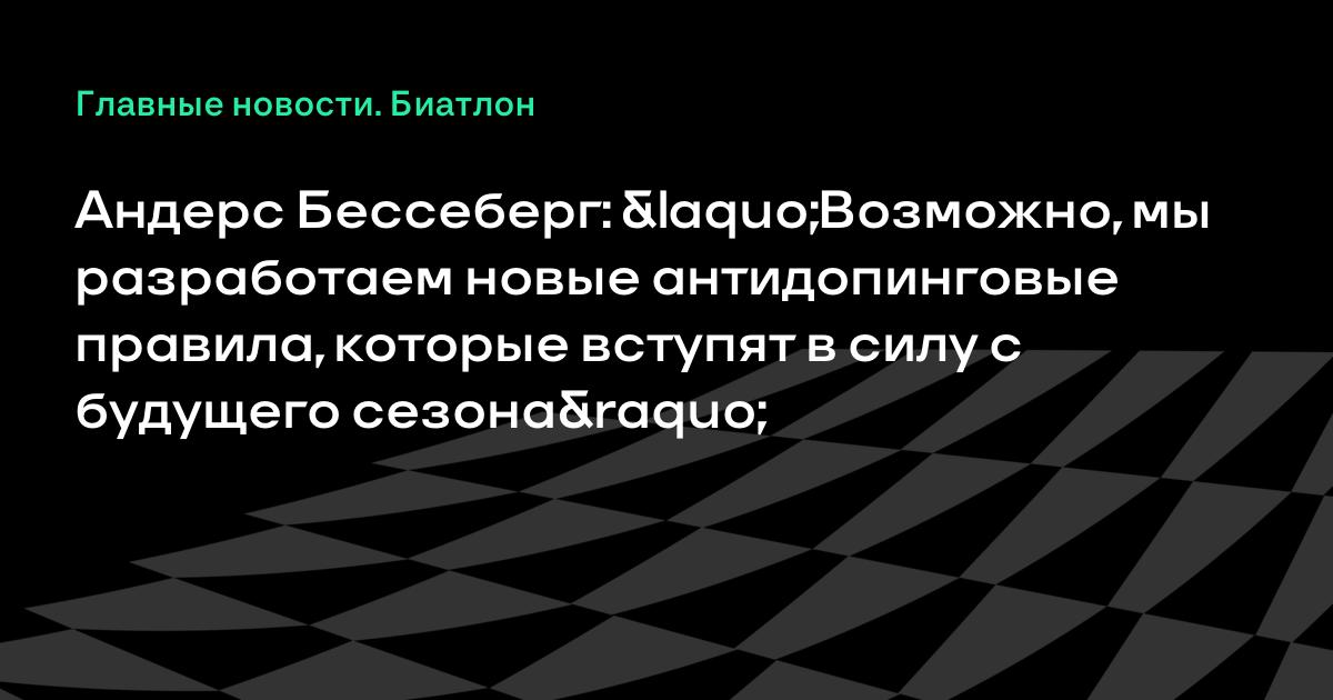 Президент Международного союза биатлонистов (IBU) Андерс Бессеберг сообщил, что новые антидопинговые правила будут введены в лучшем случае в будущем сезоне.