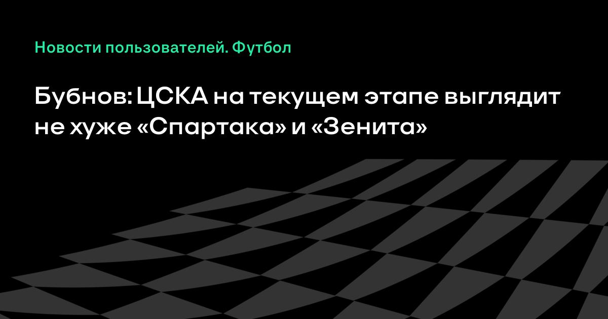 Бывший защитник сборной СССР Александр Бубнов выразил мнение, что ЦСКА по игре на данный момент ни в чём не уступает «Спартаку» и «Зениту», которые опережают «армейцев» в турнирной таблице РФПЛ.