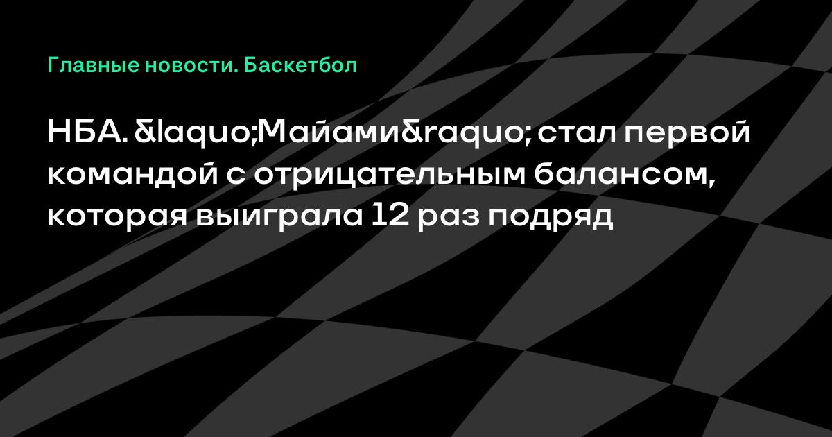 НБА. «Майами» стал первой командой с отрицательным балансом, которая выиграла 12 раз подряд
