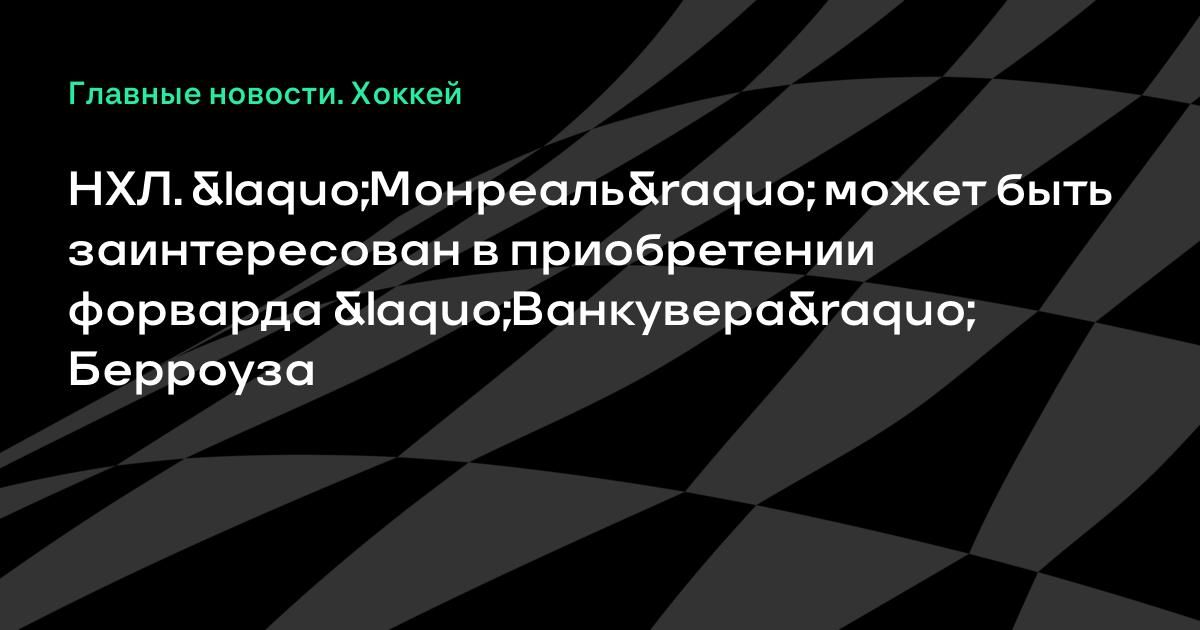 НХЛ. «Монреаль» может быть заинтересован в приобретении форварда «Ванкувера» Берроуза