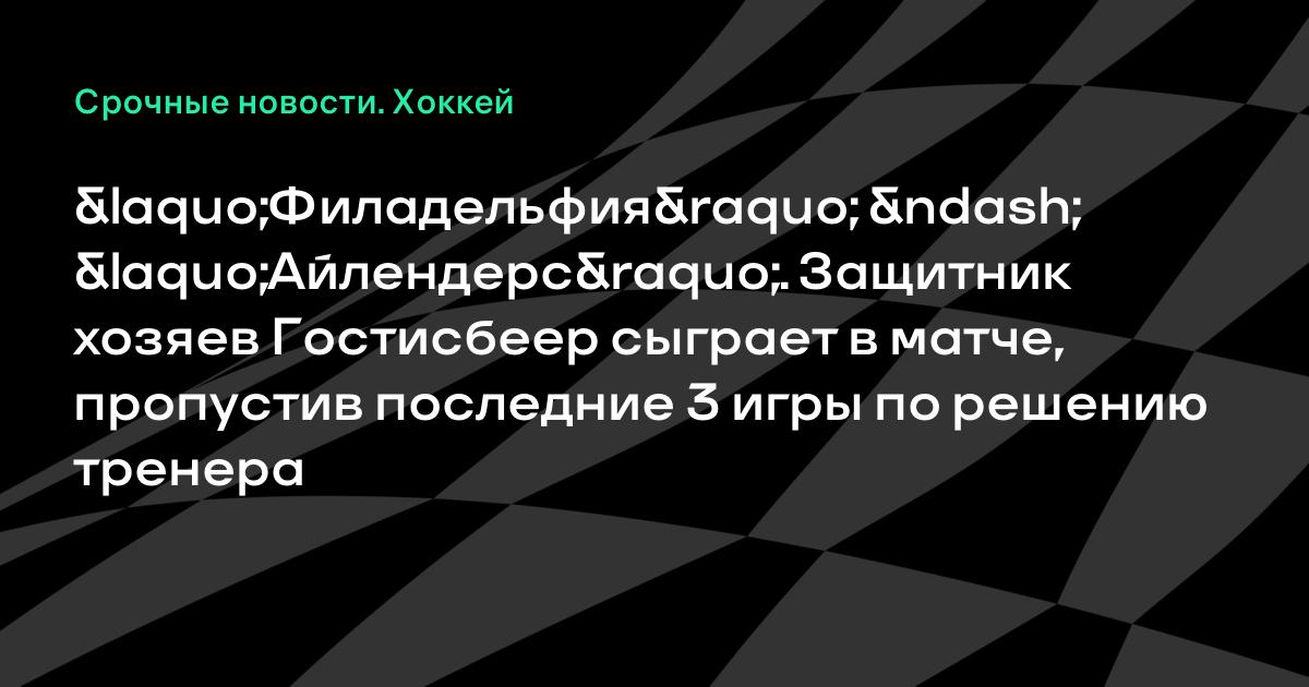 «Филадельфия» – «Айлендерс». Защитник хозяев Гостисбеер сыграет в матче, пропустив последние 3 игры по решению тренера