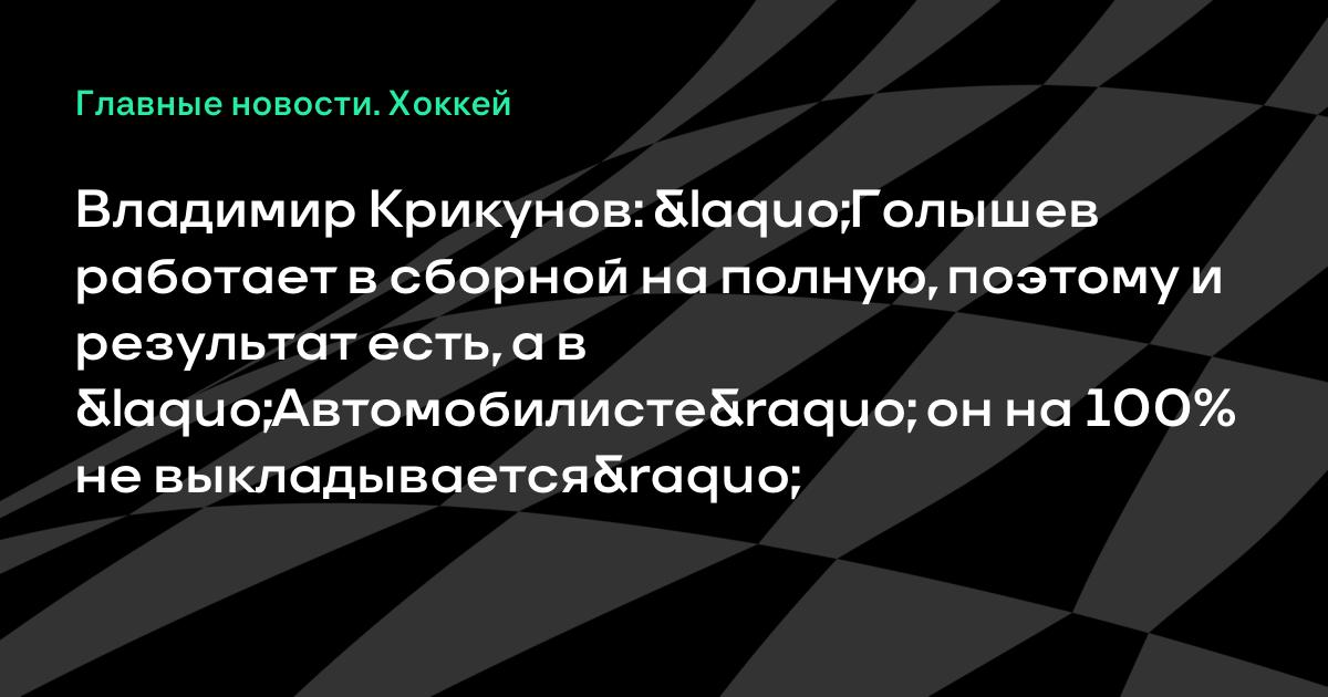 Владимир Крикунов: «Голышев работает в сборной на полную, поэтому и результат есть, а в «Автомобилисте» он на 100% не выкладывается»