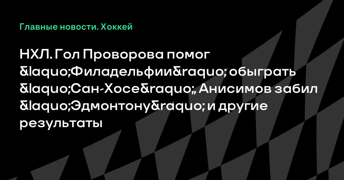 НХЛ. Гол Проворова помог «Филадельфии» обыграть «Сан-Хосе», Анисимов забил «Эдмонтону» и другие результаты
