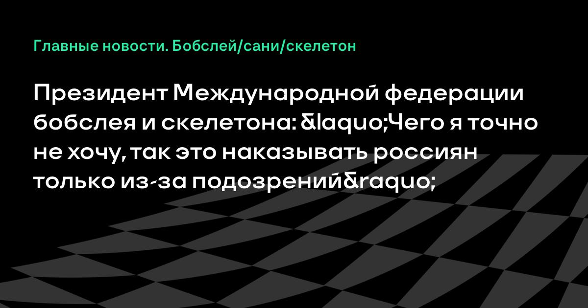 Президент Международной федерации бобслея и скелетона: «Чего я точно не хочу, так это наказывать россиян только из-за подозрений»