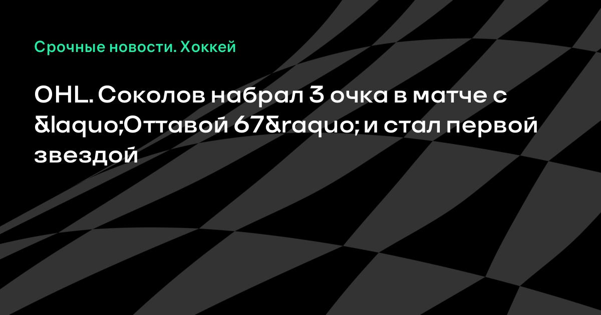 OHL. Соколов набрал 3 очка в матче с «Оттавой 67» и стал первой звездой