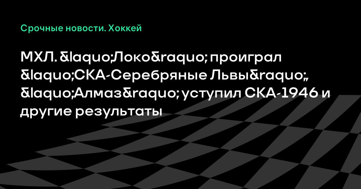 МХЛ. «Локо» проиграл «СКА-Серебряные Львы», «Алмаз» уступил СКА-1946 и другие результаты