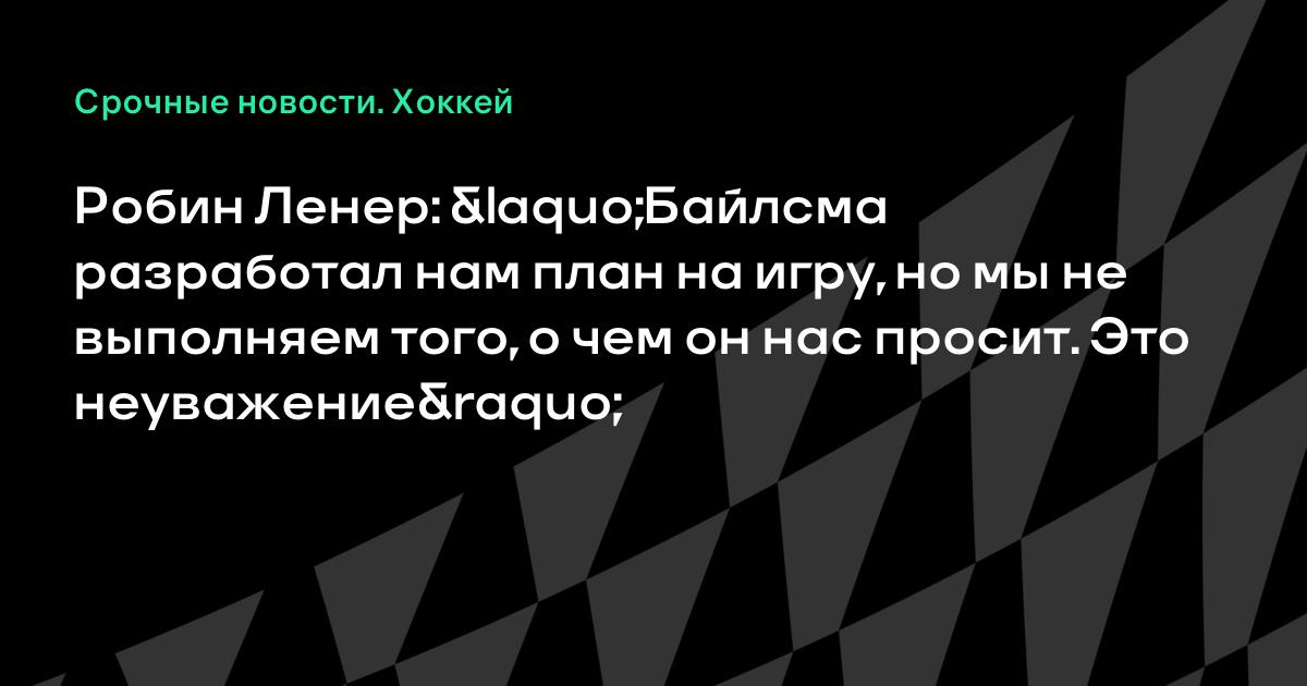 Робин Ленер: «Байлсма разработал нам план на игру, но мы не выполняем того, о чем он нас просит. Это неуважение»