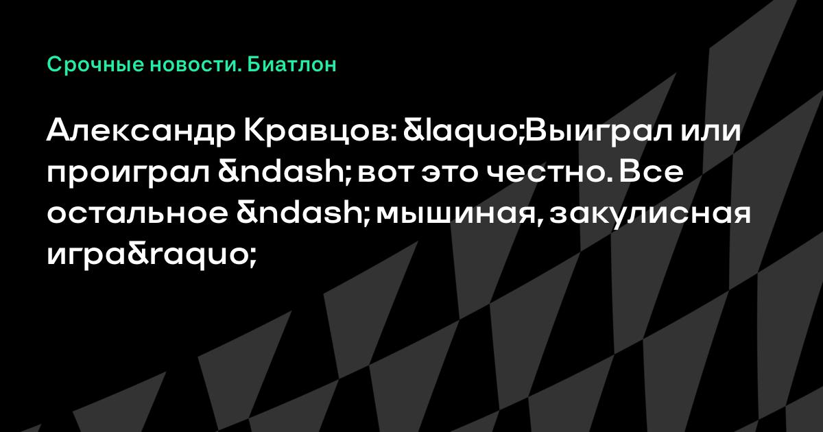 «Выиграл или проиграл, попал на пьедестал или остался вне его – вот это честно. Все остальное – мышиная, закулисная игра», – сказал Кравцов в эфире ТК «Россия 1».