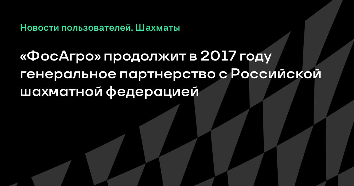 «ФосАгро» продолжит в 2017 году генеральное партнерство с Российской шахматной федерацией