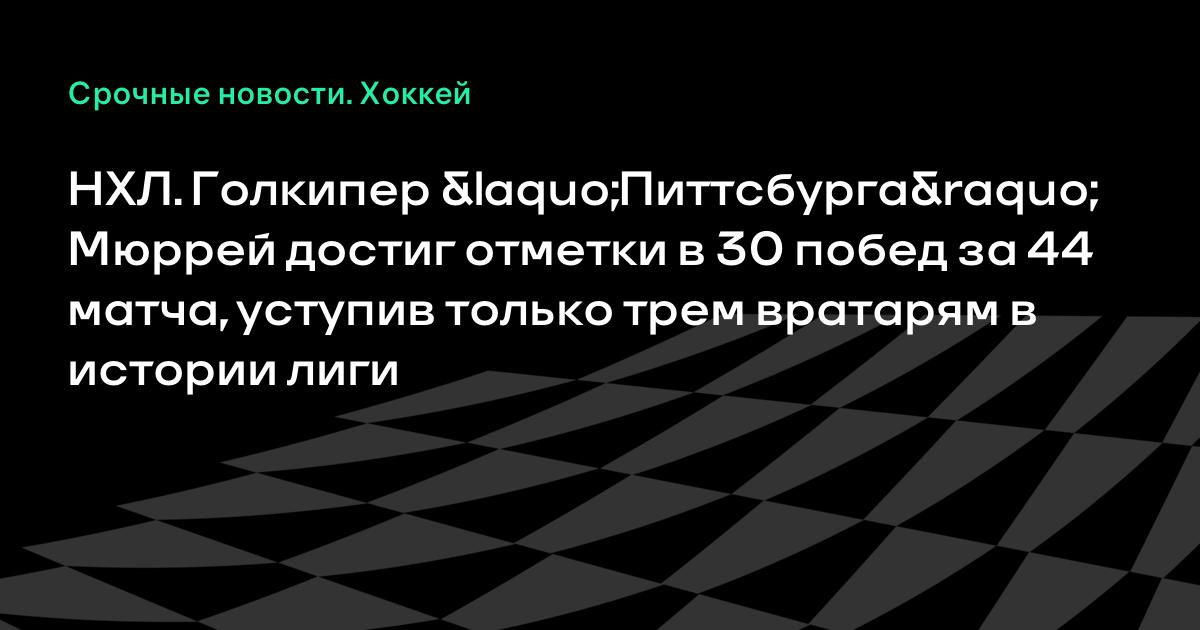 НХЛ. Голкипер «Питтсбурга» Мюррей достиг отметки в 30 побед за 44 матча, уступив только трем вратарям в истории лиги