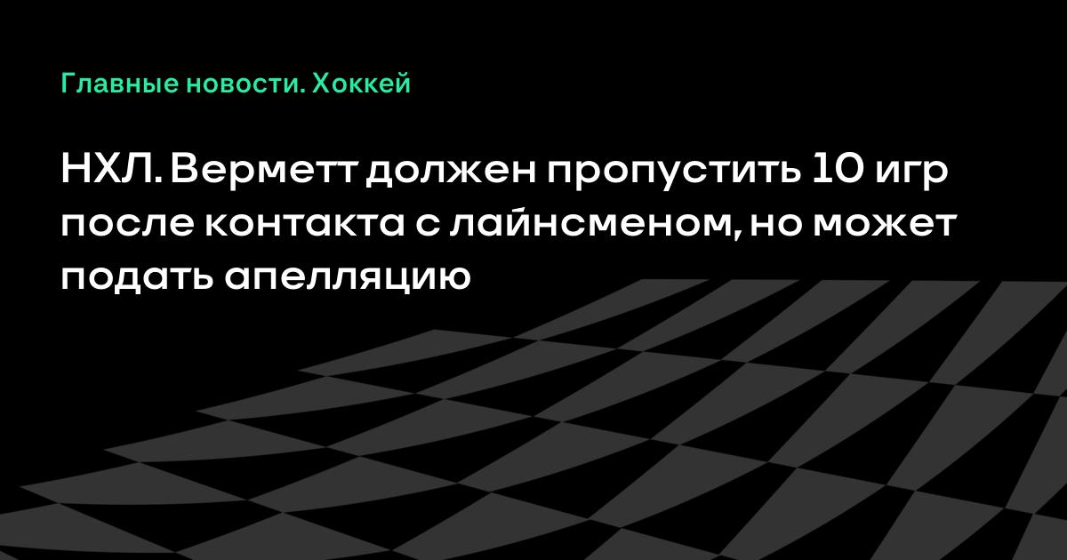 «Могу подтвердить, что Верметт был удален за нарушение второй категории – физический контакт с арбитром. Это дисквалификация на 10 матчей. Хотя дисквалификация на 10 игр накладывается автоматически, у хоккеиста есть право на апелляцию. Первым ее будет рассматривать комиссионер», – написал журналист.