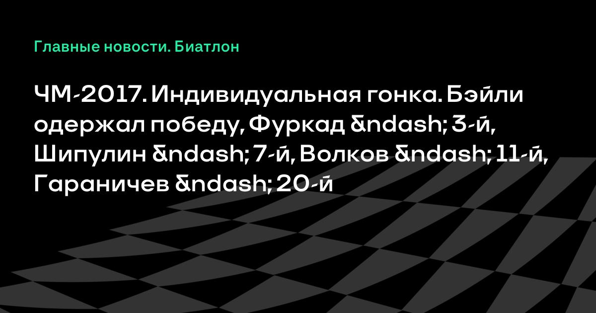 ЧМ-2017. Индивидуальная гонка. Бэйли одержал победу, Фуркад – 3-й, Шипулин – 7-й, Волков – 11-й, Гараничев – 20-й