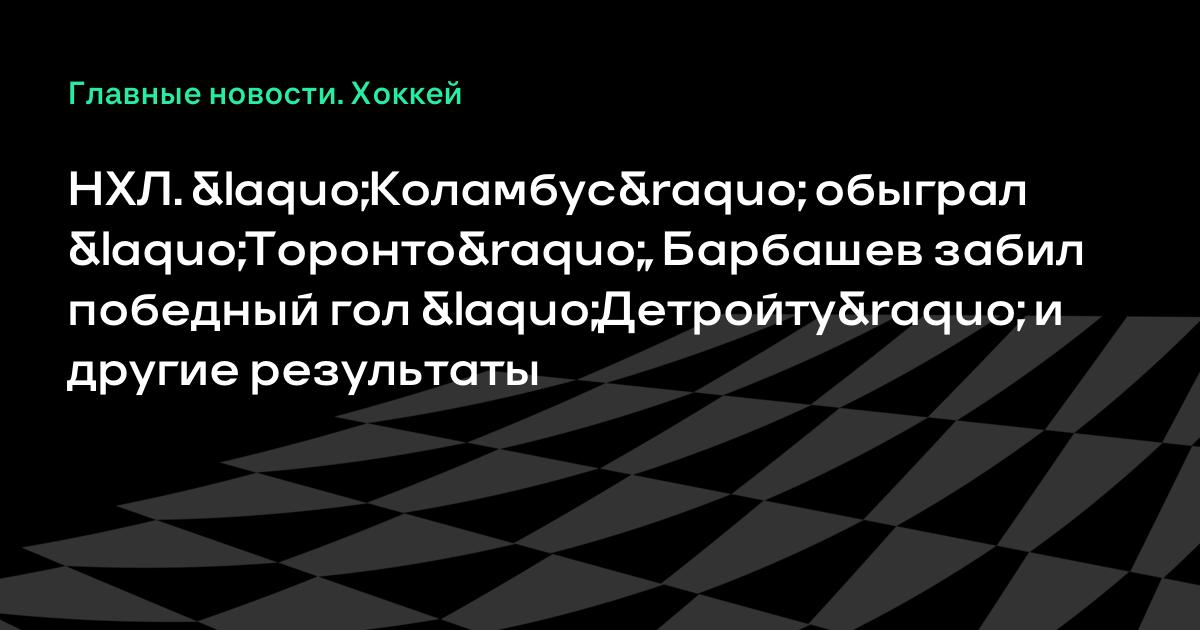 НХЛ. «Коламбус» обыграл «Торонто», Барбашев забил победный гол «Детройту» и другие результаты