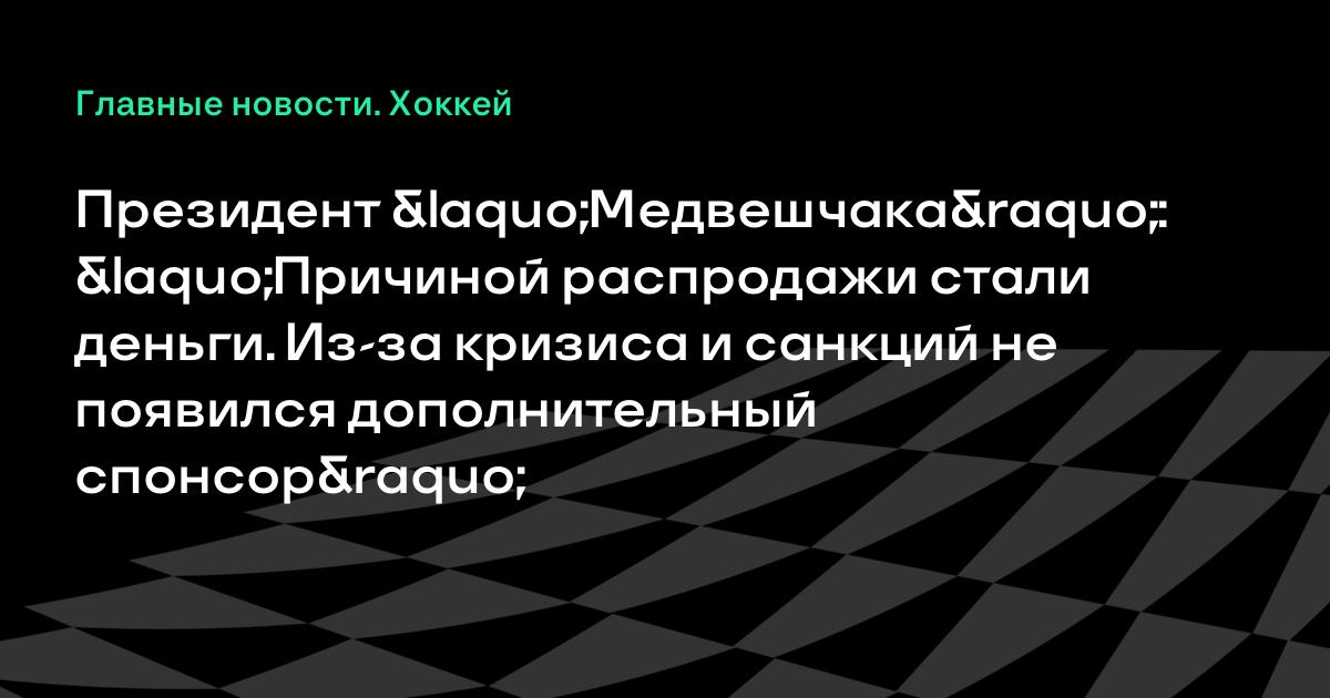 Президент «Медвешчака»: «Причиной распродажи стали деньги. Из-за кризиса и санкций не появился дополнительный спонсор»