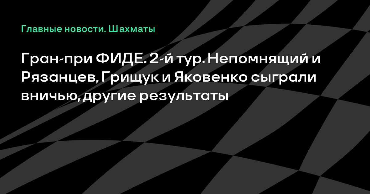 Гран-при ФИДЕ. 2-й тур. Непомнящий и Рязанцев, Грищук и Яковенко сыграли вничью, другие результаты
