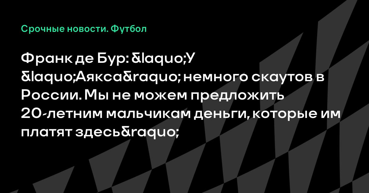 Франк де Бур: «У «Аякса» немного скаутов в России. Мы не можем предложить 20-летним мальчикам деньги, которые им платят здесь»