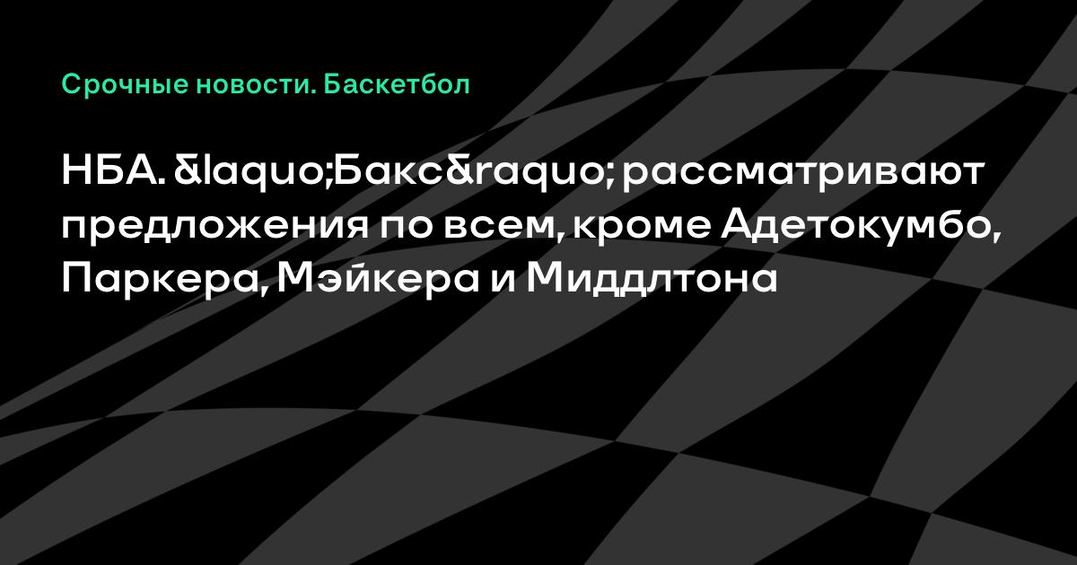 НБА. «Бакс» рассматривают предложения по всем, кроме Адетокумбо, Паркера, Мэйкера и Миддлтона