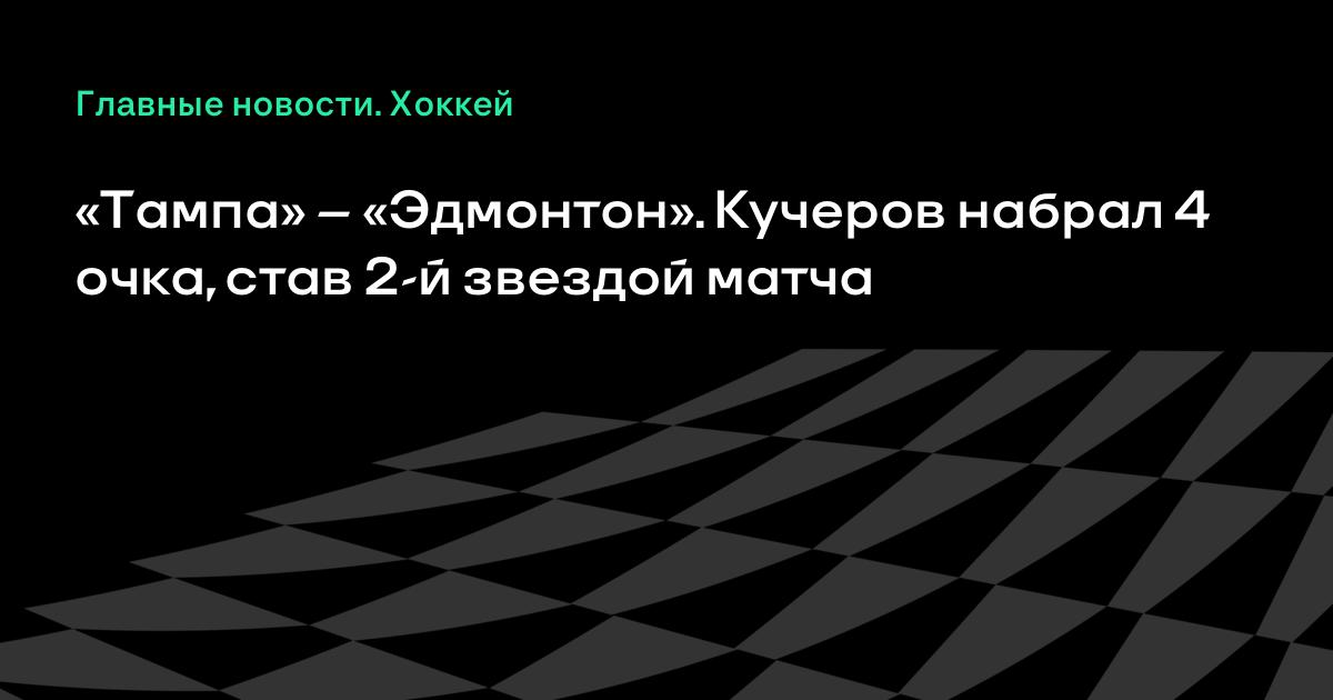 Форвард «Тампы» Никита Кучеров в игре с «Эдмонтоном» (4:1) сделал 3 голевые передачи, забросил шайбу и был признан второй звездой матча.